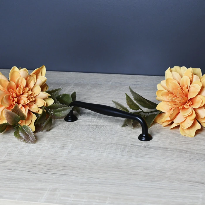 Меблева ручка-скоба з матовим чорним покриттям має міжцентрову відстань 128 мм. Вона гармонійно поєднує практичність та сучасний дизайн.