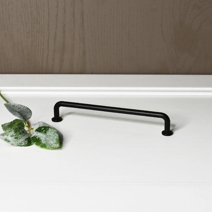 Меблева ручка-скоба з матовим чорним покриттям має міжцентрову відстань 160 мм. Вона чудово підходить для більших фасадів і надає меблям сучасного вигляду.