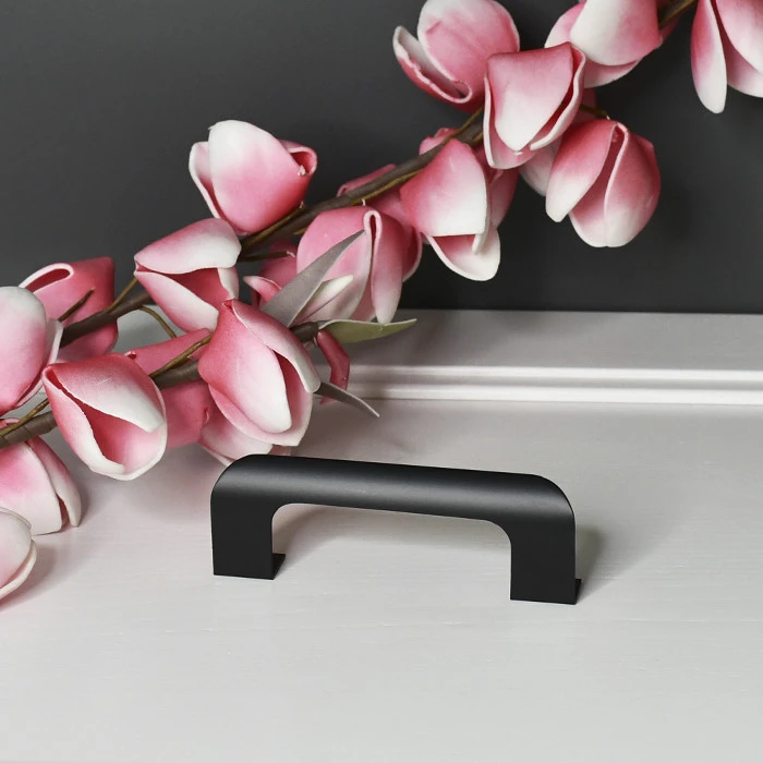 Меблева ручка-скоба з матовим чорним покриттям має міжцентрову відстань 96 мм. Вона гармонійно підходить для меблів у сучасному стилі.