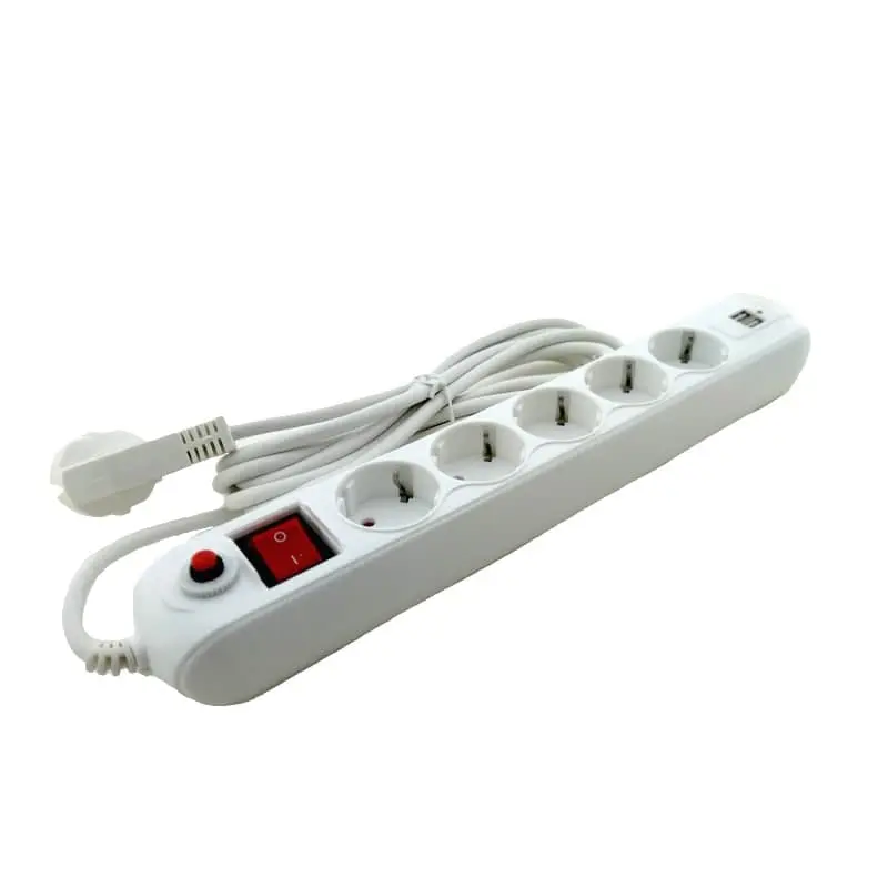 Сетевой фильтр с заземлением, с кнопкой перегрузки и выключателем 5 гнезд + 2USB, 3 м, белый EH-NFW-5.3ex от ElectroSpace – это идеальный выбор для обеспечения безопасности ваших электроприборов. ая защита для ваших устройств Он позволяет включить несколько электроприборов в одну розетку одновременно, что делает его удобным для использования в домашних условиях или в офисе.