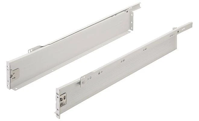 Металбокс Hafele длиной 450 мм и высотой 86 мм — это прочная и удобная система для создания выдвижных ящиков средней глубины. Белое покрытие по стандарту RAL 9010 делает его идеальным для мебели светлых тонов, особенно в кухне и ванной.