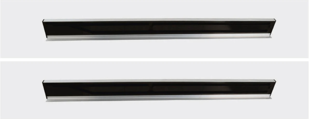 Механізм для розсувного столу «слайдер» Технічна характеристика: Механізм: слайдер Розмір: 900 мм/1200 мм.*50 мм. Навантаження 45 кг. Матеріал: алюміній-пластик Покриття: анодування Колір: чорний+срібло