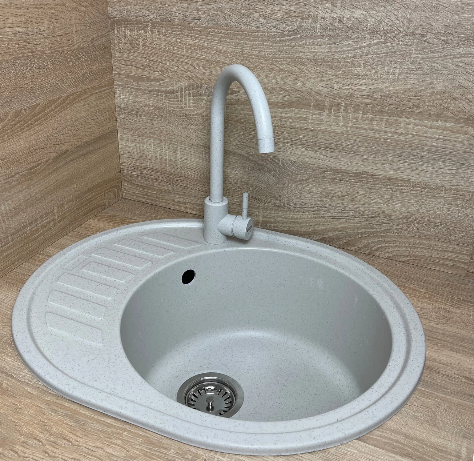 Мийка кухонна Adamant Ovum, штучний камінь, овальна, з крилом, 615х495х200мм, чаша - 1, врізна, Old