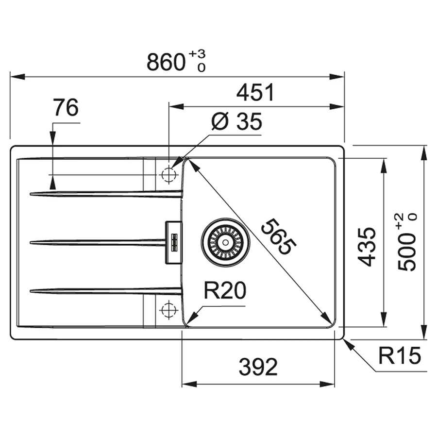 Мийка кухонна Franke Centro, фраграніт, прямокутник, з крилом, 860х500х200мм, чаша - 1, врізна, обор