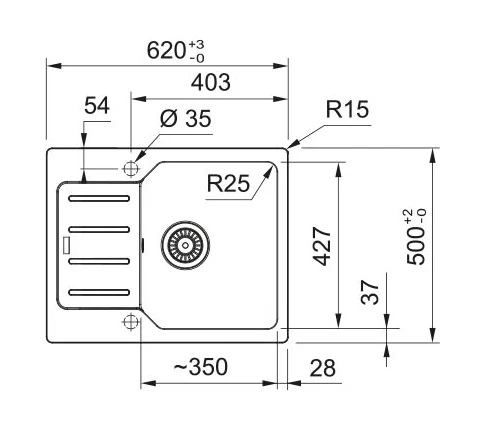 Мийка кухонна Franke City, фраграніт, прямокутник, з крилом, 620х500х190мм, чаша - 1, врізна, оборот
