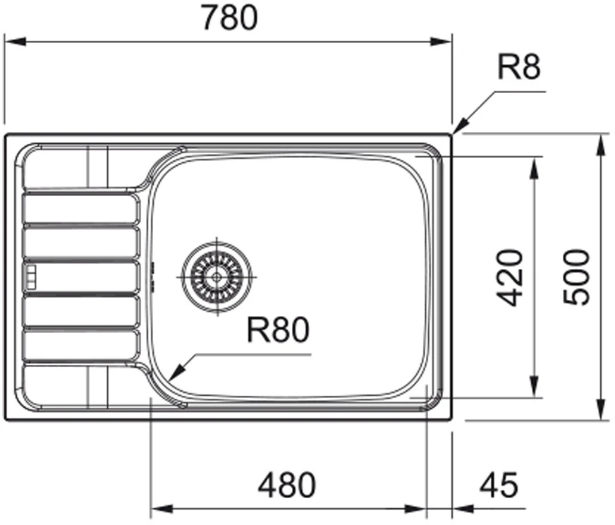 Мийка кухонна Franke Spark, нерж.сталь, прямокутник, з крилом, 780х500х160мм, чаша - 1, врізна, обор