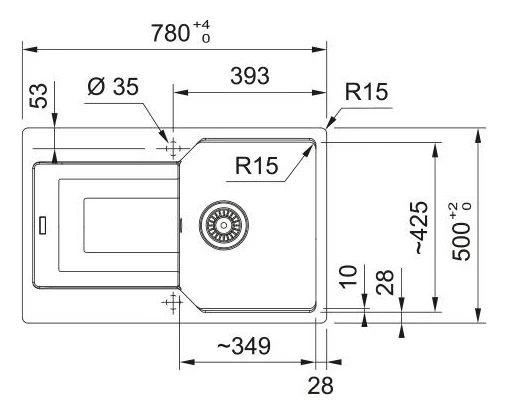 Мийка кухонна Franke Urban, фраграніт, прямокутник, з крилом, 780х500х220мм, чаша - 1, врізна, оборо