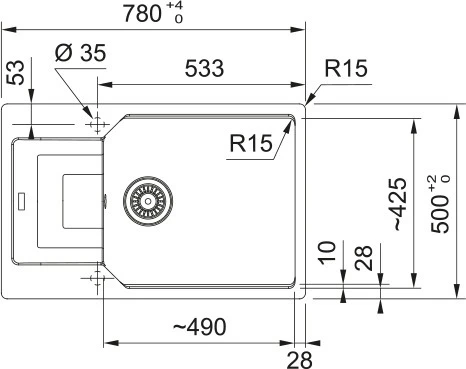 Мийка кухонна Franke Urban, фраграніт, прямокутник, з крилом, 780х500х220мм, чаша - 1, врізна, оборо