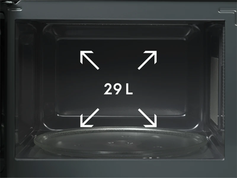 Хай вас не вводити в обман мініатюрний зовнішній вигляд. Завдяки ємності 29 л ця мікрохвильова піч може вмістити навіть найбільші страви.