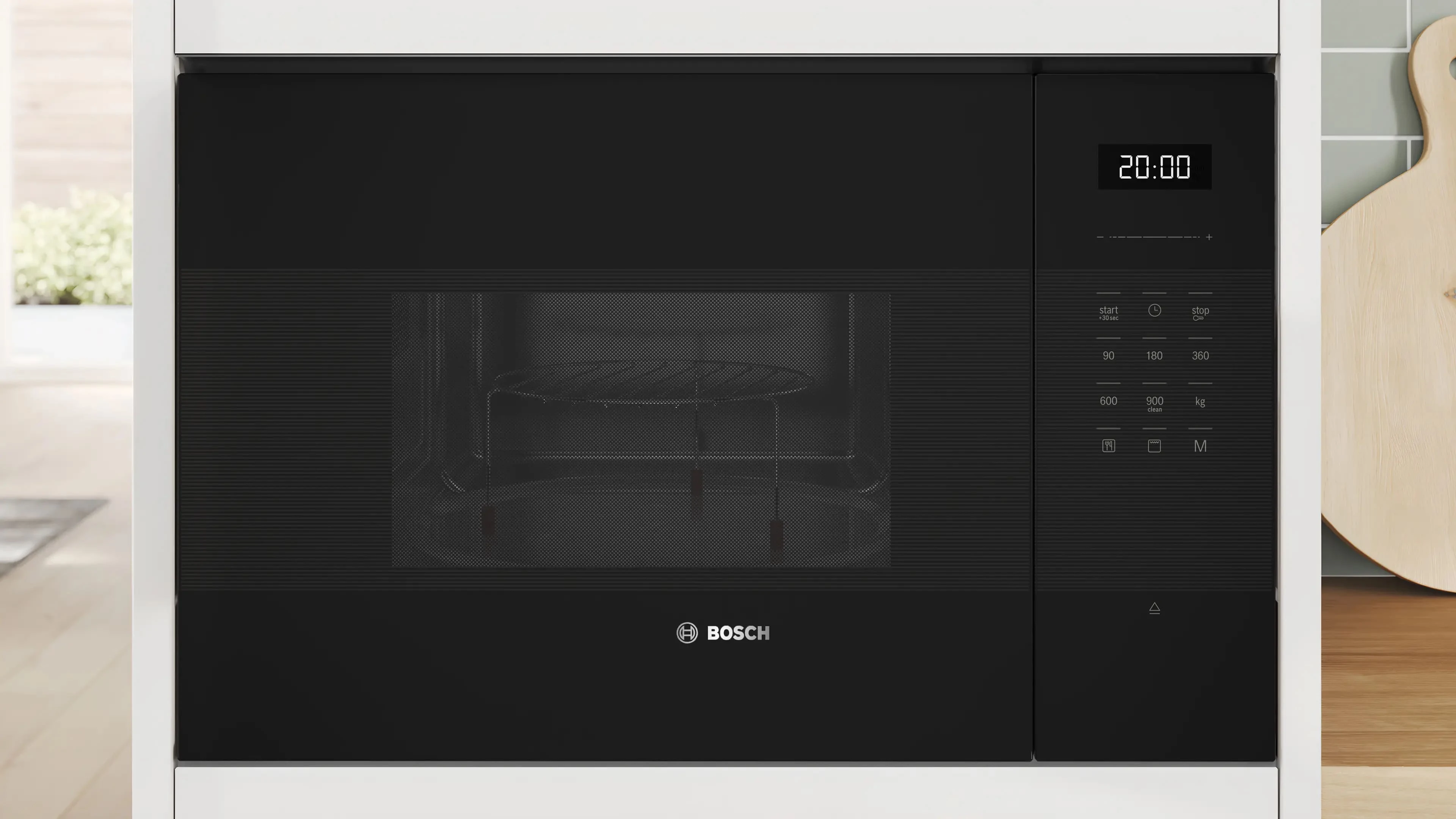 Мікрохвильова піч Bosch вбудована, 25л, електр. керув., 900Вт, гриль, дисплей, чорний