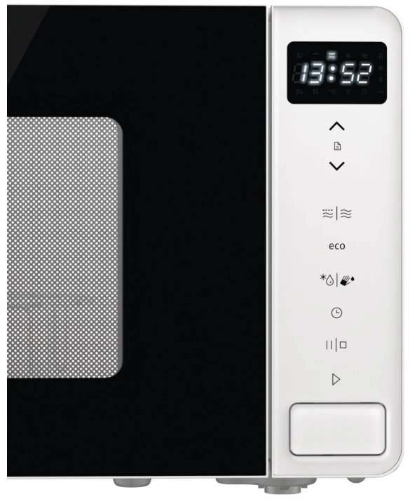 Мікрохвильова піч Gorenje MO20S4W об’ємом 20 л поєднує мікрохвильовий нагрів 800 Вт із кварцовим грилем 1000 Вт. Сенсорне електронне управління з LED-дисплеєм і функцією SmartControl забезпечує точне налаштування режимів. AUTO-меню з 10 програмами та AquaClean спрощують приготування й догляд за камерою. Білий корпус і скляні дверцята з галогеновим освітленням підходять для світлих кухонь.