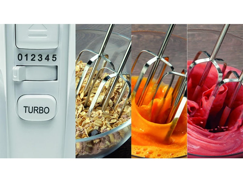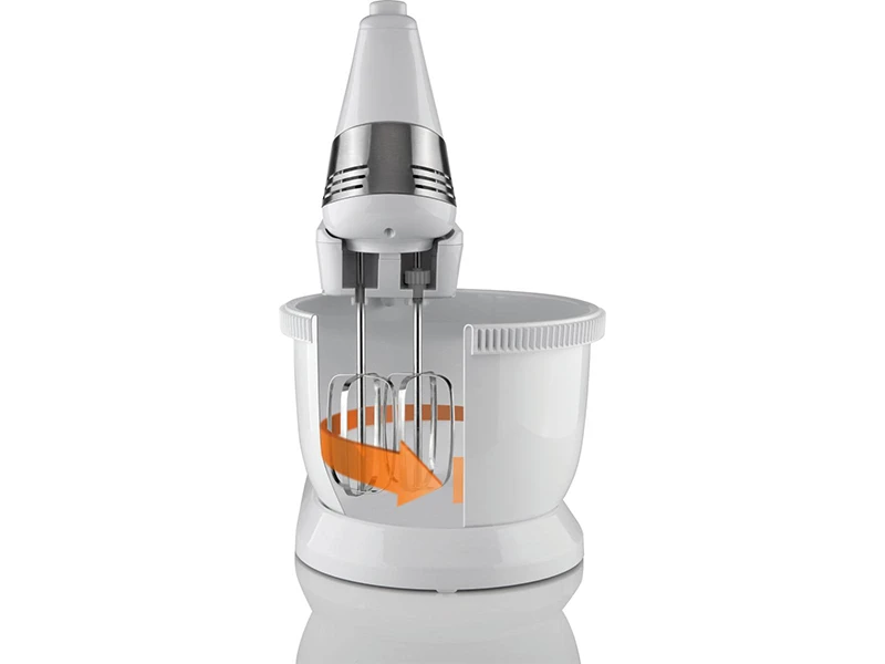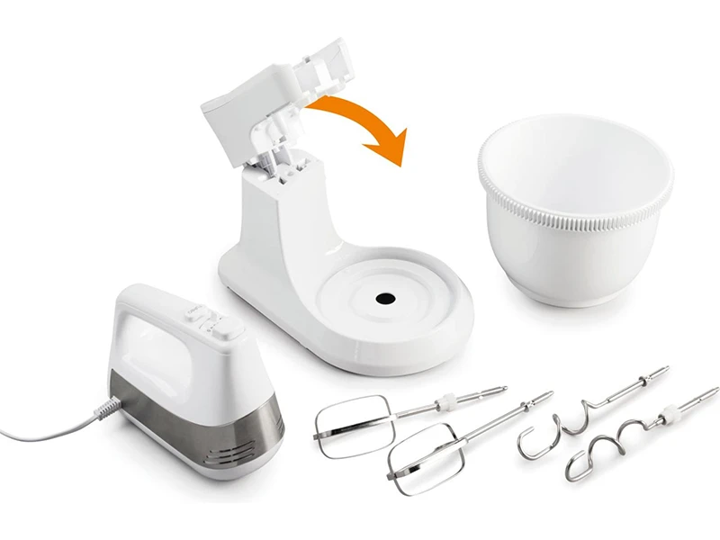 Великою перевагою гнучкого та портативного ручного міксера є наявність підставки із чашею, які забезпечать рівномірність і однорідність суміші, яких ви прагнете досягти під час випікання. Автоматична обертальна чаша допоможе вам підготувати найкраще тісто для вашого кулінарного шедевра.