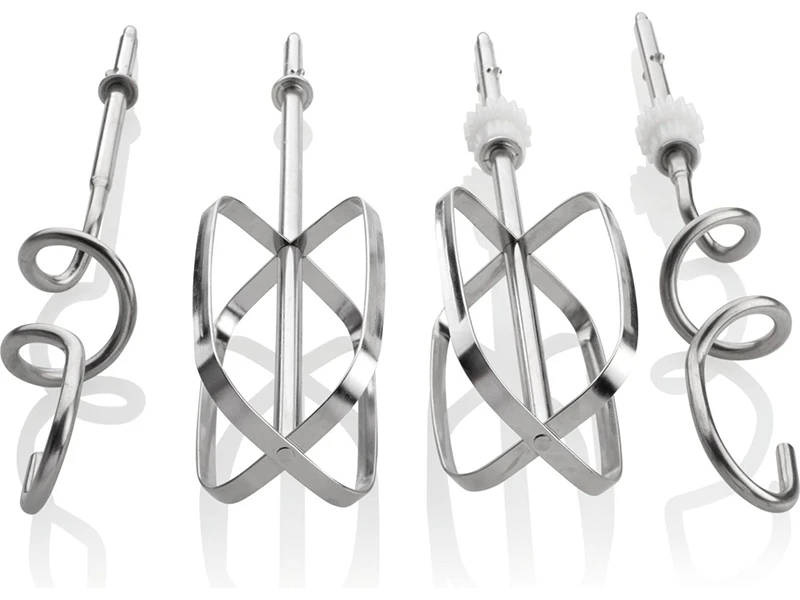 Потужний двигун постійного струму достатньо безшумний, тож вам сподобається ним користуватися! У комплекті з ручним міксером постачаються спеціально розроблені надміцні мішалки та гачки для тіста з нержавіючої сталі. Їх можна використовувати для змішування та збивання інгредієнтів, а також замішування тіста. Їх можна легко та зручно вимити в посудомийній машині.
