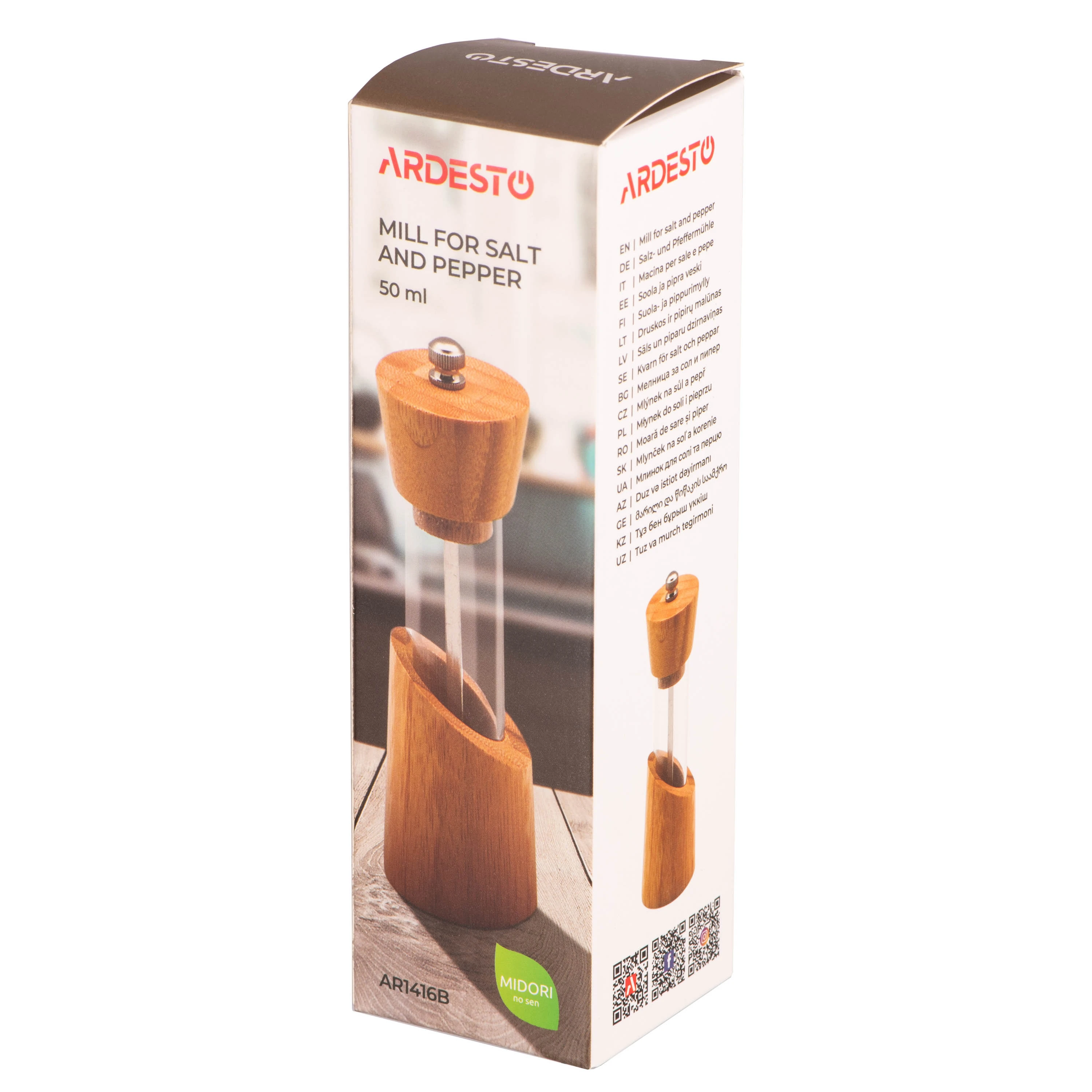 Млинок для солі та перцю ARDESTO Midori, 50мл, бамбук, нержавіюча сталь, пластик