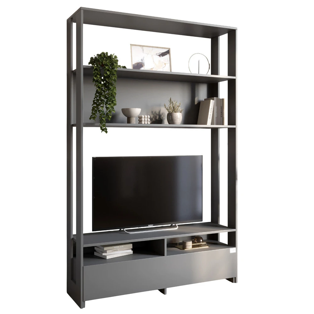Благодаря своим продуманным элементам, стеллаж не только выглядит привлекательно, но и обеспечивает достаточно места для хранения. Полочки и тумба под телевизор позволяют организовать ваши вещи так, чтобы они были всегда под рукой. Вы сможете легко разместить все необходимые аксессуары, книги и технику, сохраняя порядок в вашем доме.
