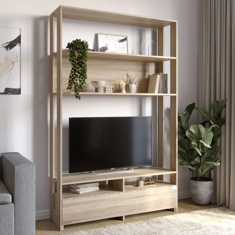 Модуль-4 стеллаж с полками и тумбой под ТВ LION Нобу Дуб Сонома