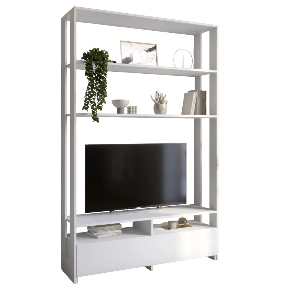 Модуль-4 стеллаж с полками и тумбой под ТВ LION Нобу Нимфея Альба