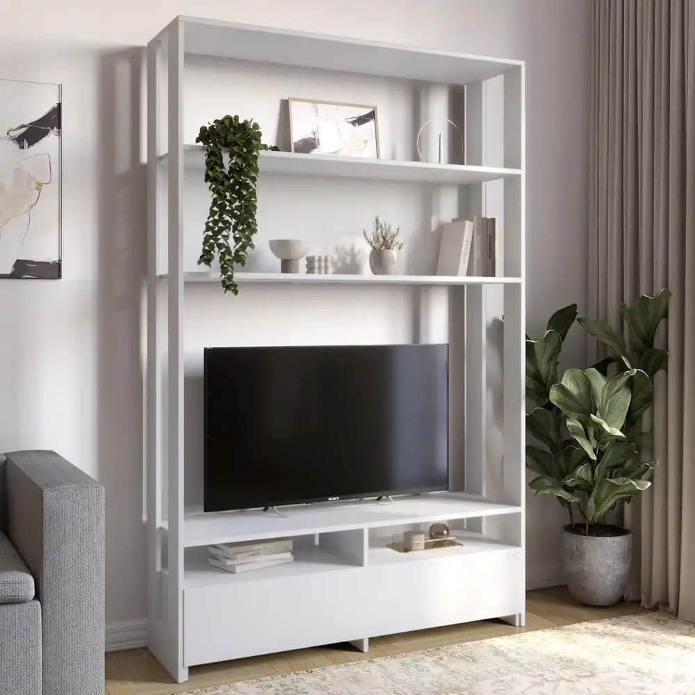 Ищете идеальный стеллаж для вашего интерьера? Модуль-4 стеллаж с полками и тумбой под ТВ LION Нобу Нимфея Альба станет отличным решением для создания функционального и стильного пространства. Его элегантный дизайн гармонично впишется в любой интерьер, придавая ему современный вид.
