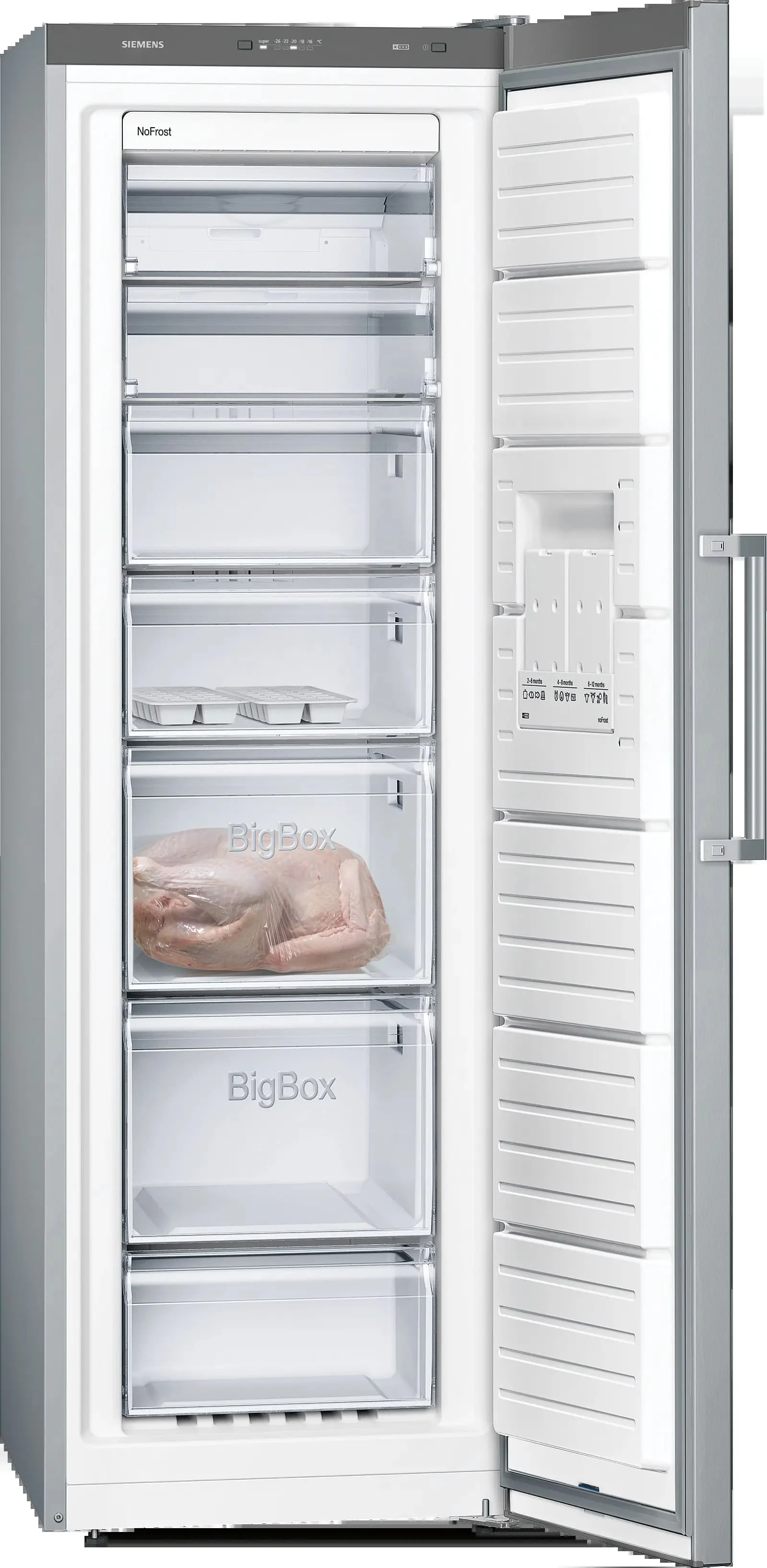 Морозильна камера Siemens GS36NFIEV серії iQ300 — окремовстановлювана модель із корисним об’ємом 242 л. Технологія noFrost усуває потребу у ручному розморожуванні та підтримує стабільні умови зберігання. Система multiAirflow забезпечує рівномірний розподіл холодного повітря всередині камери. Покриття antiFingerprint зменшує помітність слідів на поверхні з нержавіючої сталі.