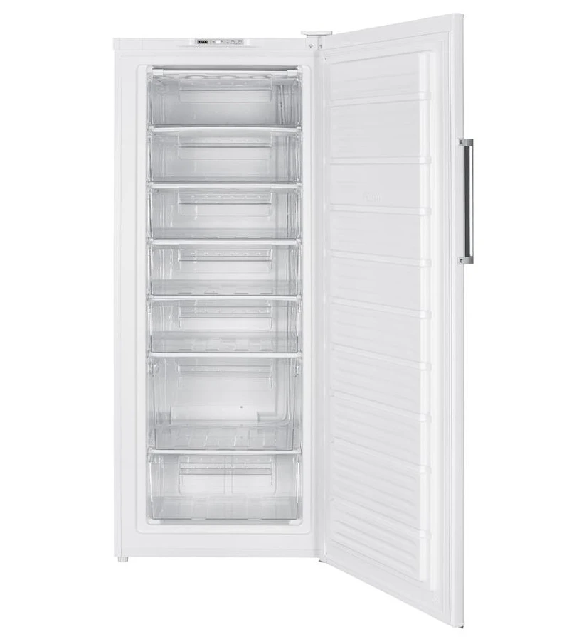 Морозильна камера Snaige F21SM-TT000EH об’ємом 242 л у білому виконанні призначена для окремого розміщення. Сім прозорих висувних пластикових ящиків забезпечують зручний доступ і огляд продуктів. Електронне керування дозволяє точно встановлювати температуру в діапазоні від -14 до -22 °C, а функція швидкого заморожування прискорює процес для нових партій. Потужність заморозки становить 11 кг на добу, автономне збереження холоду триває 12 годин. Рівень шуму 40 дБ і клас енергоефективності E роблять модель практичним вибором для домашнього використання.