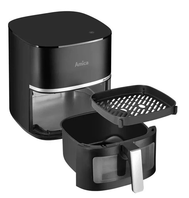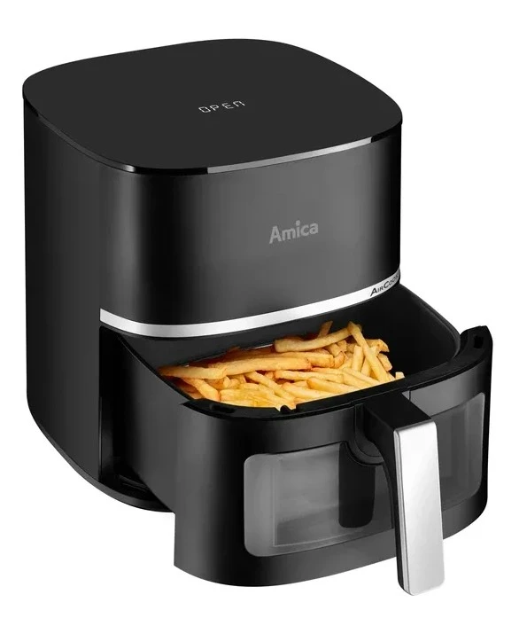 Мультипіч Amica AFM5020 — компактна аерофритюрниця з потужністю до 1600 Вт та чашею об’ємом 5,2 л. Сенсорне керування та 10 автоматичних програм спрощують приготування різних страв. Квадратна форма кошика забезпечує зручне розміщення продуктів. Антипригарне покриття та прозоре вікно підвищують комфорт використання. Корпус із пластику виконаний у чорному кольорі.