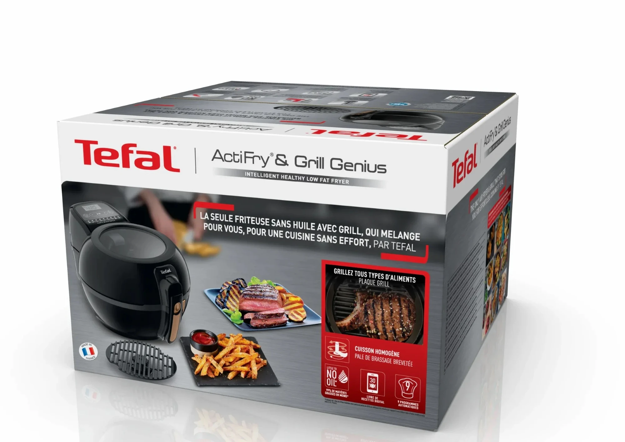 Мультипіч Actifry & Grill Genius від Tefal – це ідеальне поєднання хрусткої скоринки та ідеального прожарювання! Функція гриля забезпечує відмінні результати завдяки решітці з литого алюмінію, а лопатка для автоматичного перемішування робить процес приготування максимально зручним. До того ж, завдяки на 99% меншій кількості доданого жиру (в порівнянні з класичною фритюрницею), смажені страви стають значно кориснішими! Інноваційна технологія мультипечі та 9 розумних автоматичних програм гарантують універсальність і чудові результати.
