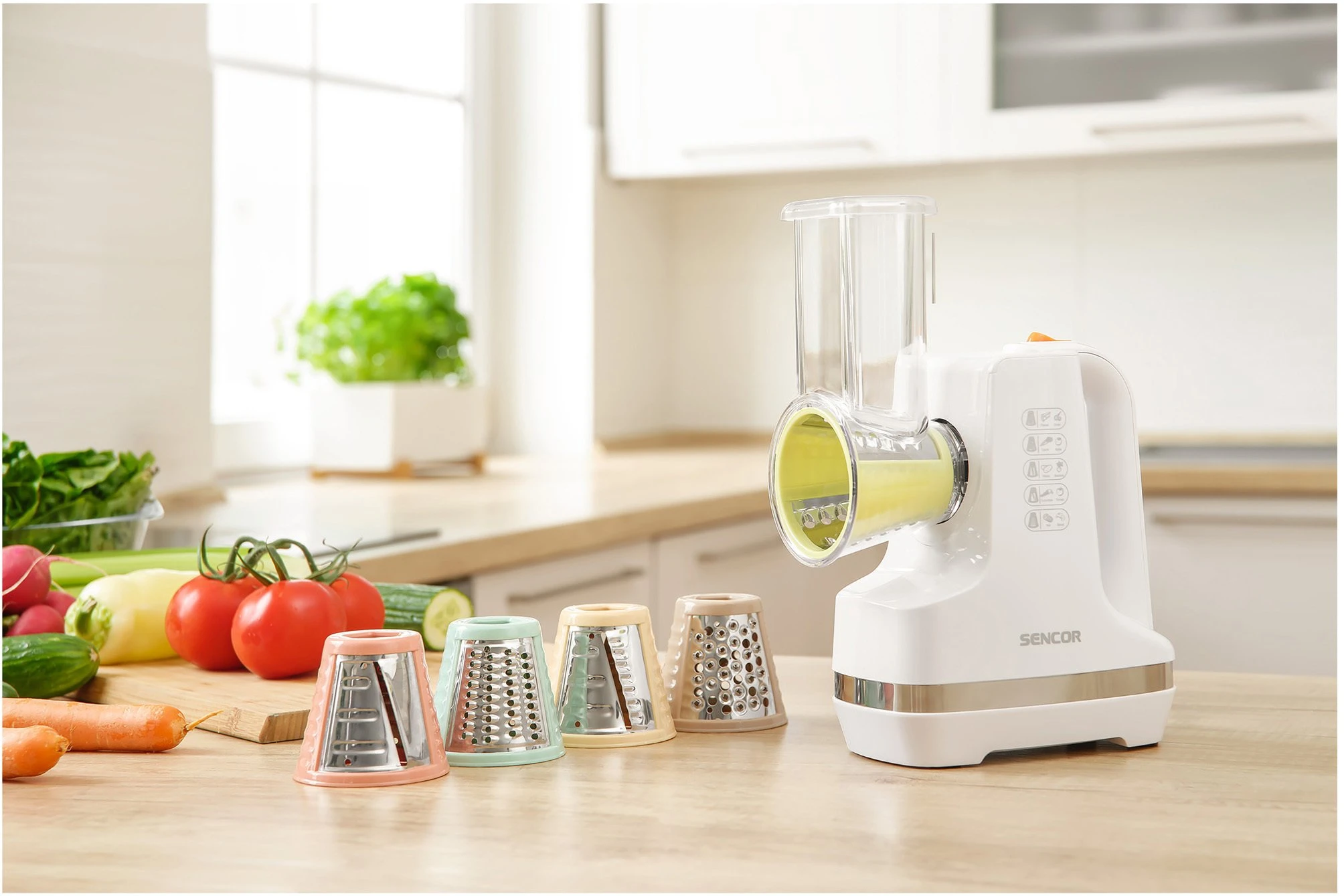 Мультирізка Sencor стаціонарна, 150Вт, 5 насадок, білий