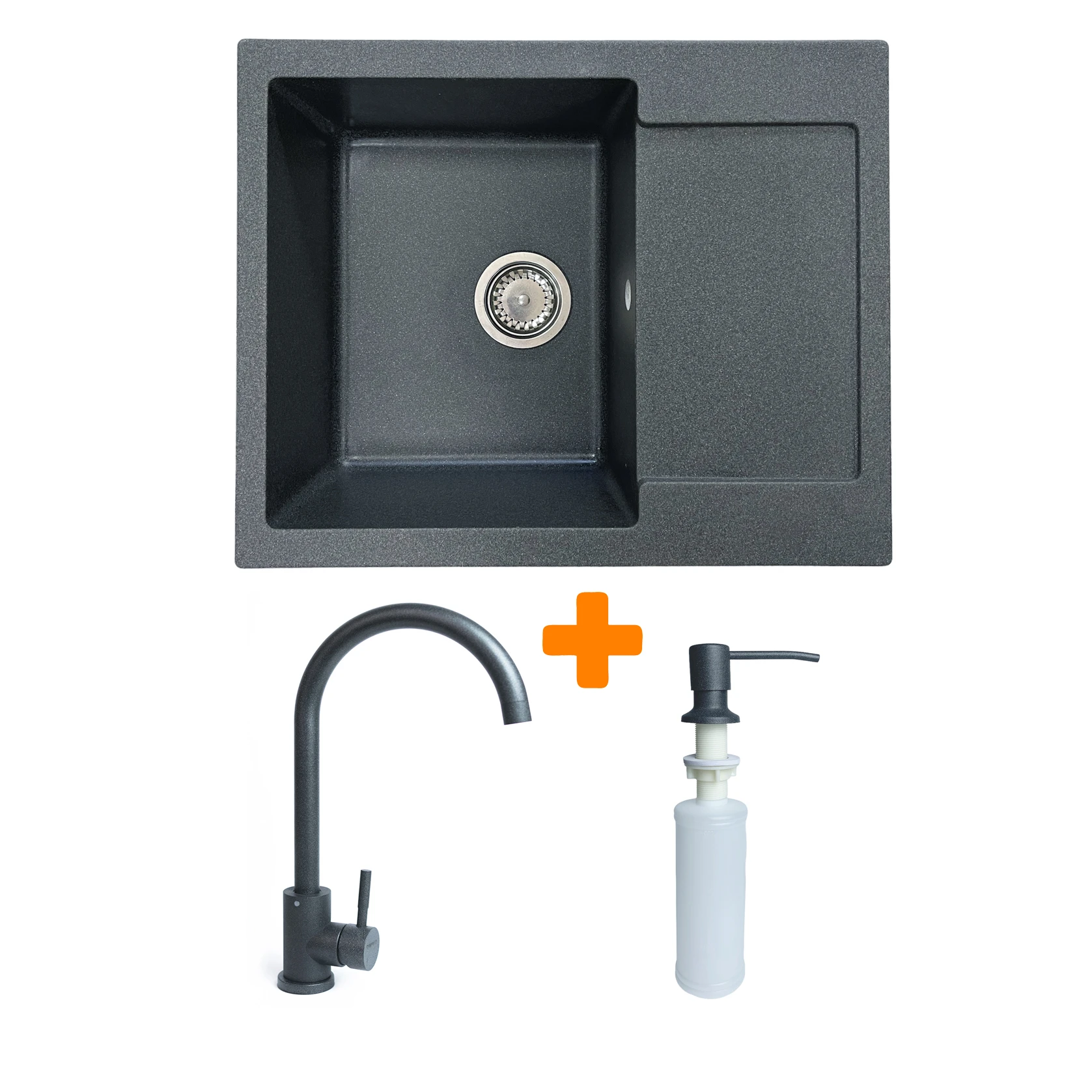 Набір Adamant Minimal поєднує врізну мийку зі штучного каменю з крилом, змішувачем і дозатором, утворюючи комплексне рішення для кухні. Прямокутна форма та продумана глибина чаші забезпечують зручність під час миття посуду та приготування продуктів. Матеріал Solid Surface стійкий до подряпин, впливу температур і барвників. Крило додає додаткового місця для сушіння та роботи.