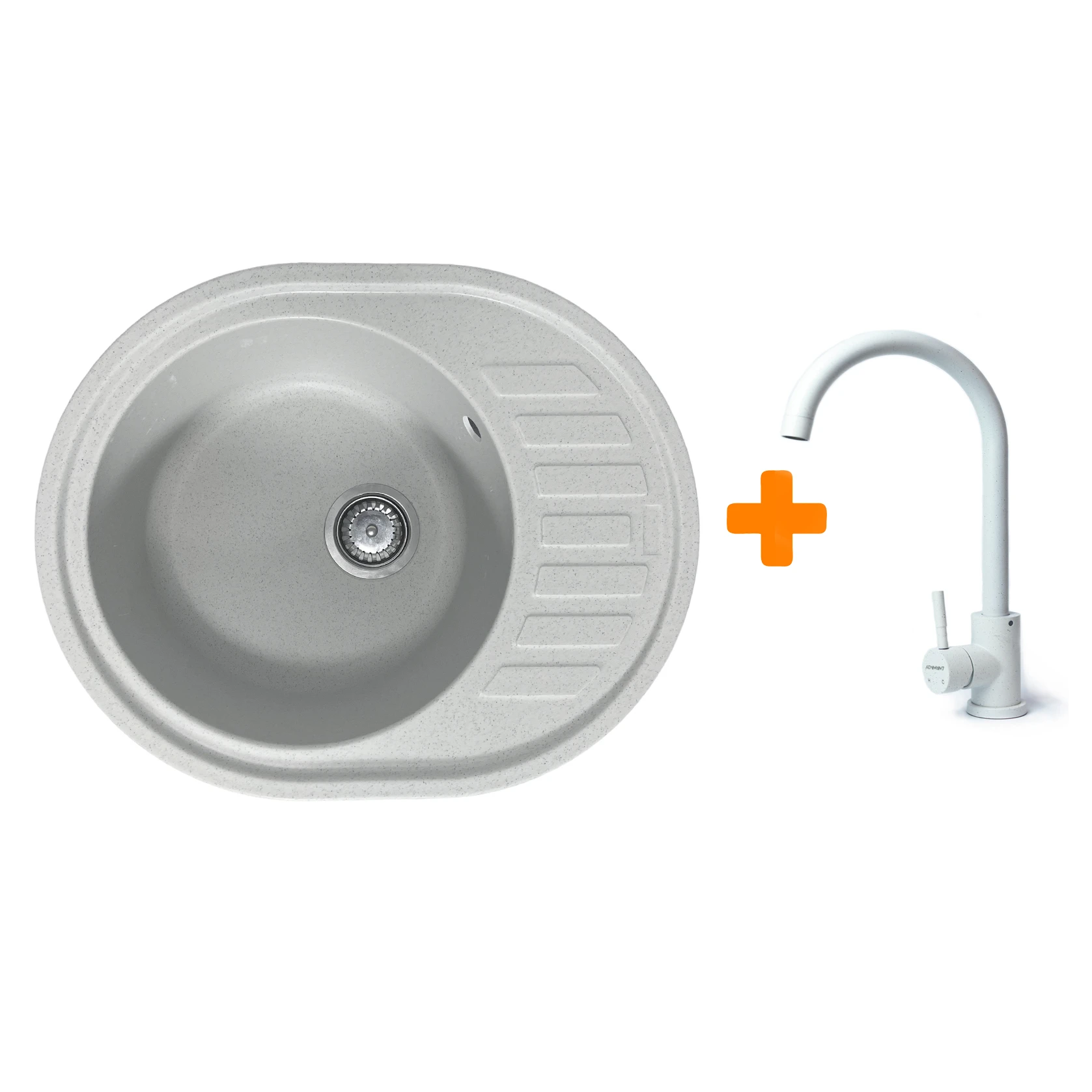 Набір Adamant Ovum поєднує овальну врізну мийку зі штучного каменю з функціональним крилом та надійним змішувачем. Завдяки технології Solid Surface поверхня стійка до впливу високих температур та щоденного навантаження. Глибока чаша забезпечує комфортне миття посуду й обробку продуктів. Структура матеріалу проста в догляді та не вбирає запахів. Це збалансоване рішення для сучасних кухонь із вимогами до довговічності та практичності.