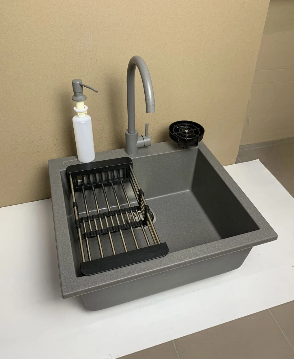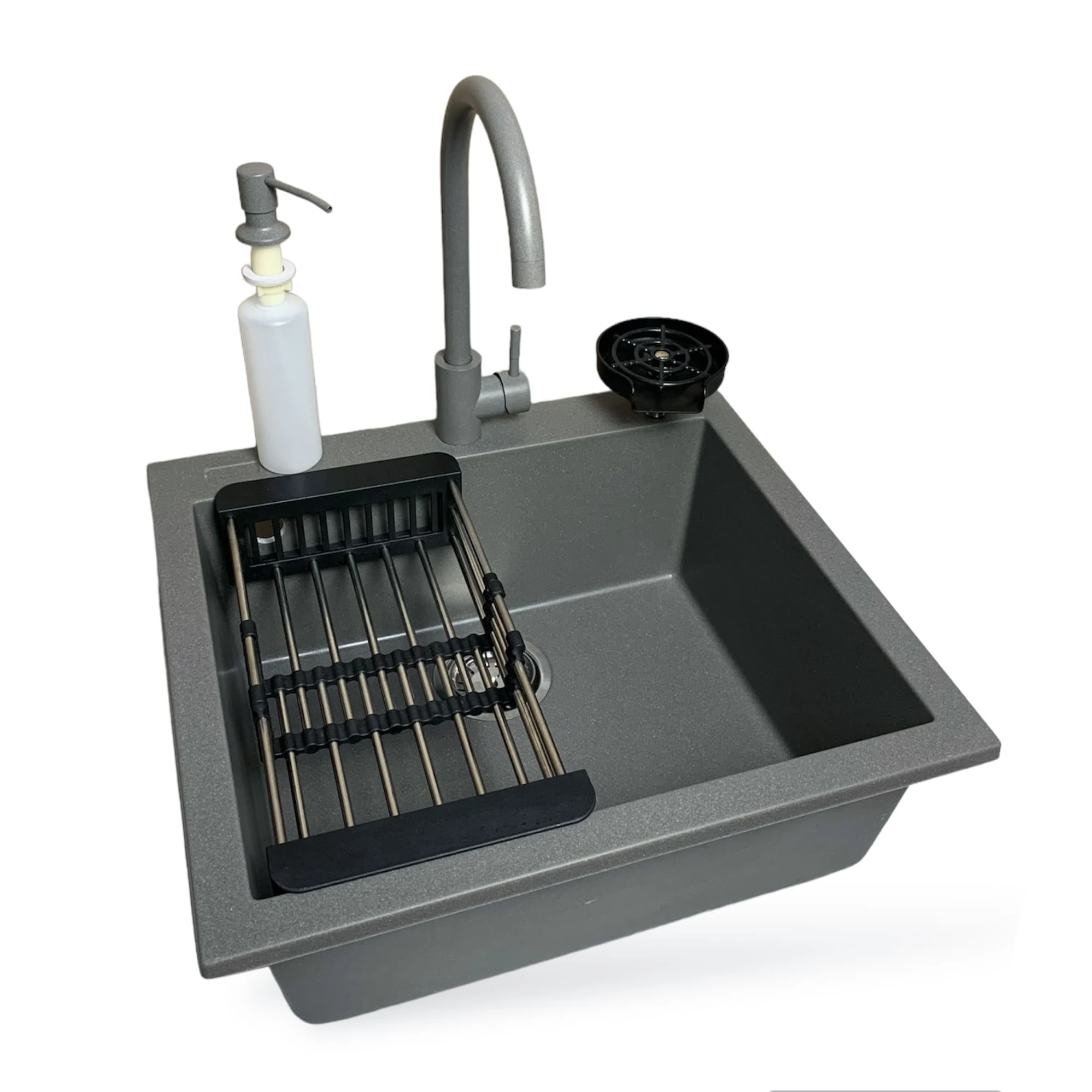 Набір Adamant Univer – це продумане рішення, яке об’єднує мийку зі штучного каменю, змішувач, дозатор, ополіскувач склянок та коландер. Квадратна форма та конструкція без крила дозволяють раціонально використати простір на кухні. Технологія Solid Surface забезпечує високу міцність, стійкість до подряпин і зручність у догляді. Додаткові аксесуари роблять щоденну роботу комфортнішою та підтримують порядок у робочій зоні. Комплект створений для тих, хто цінує функціональність та сучасні матеріали.