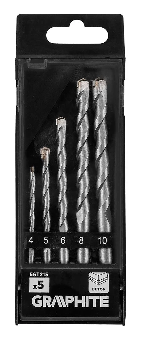Набір свердел по бетону GRAPHITE призначений для свердління отворів у бетоні, цеглі та камені. Оптимальне рішення для побутових і монтажних робіт з найпопулярнішими діаметрами.