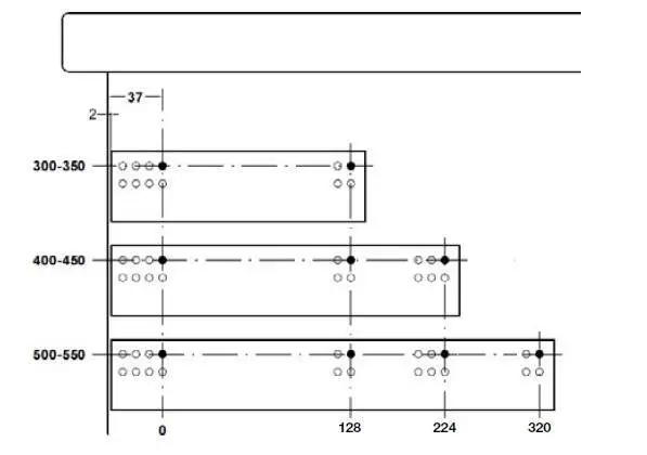 - Регулировка по ширине: SB = внутренняя ширина корпуса - 49 + 2 × толщина боковины (макс. 19 мм)