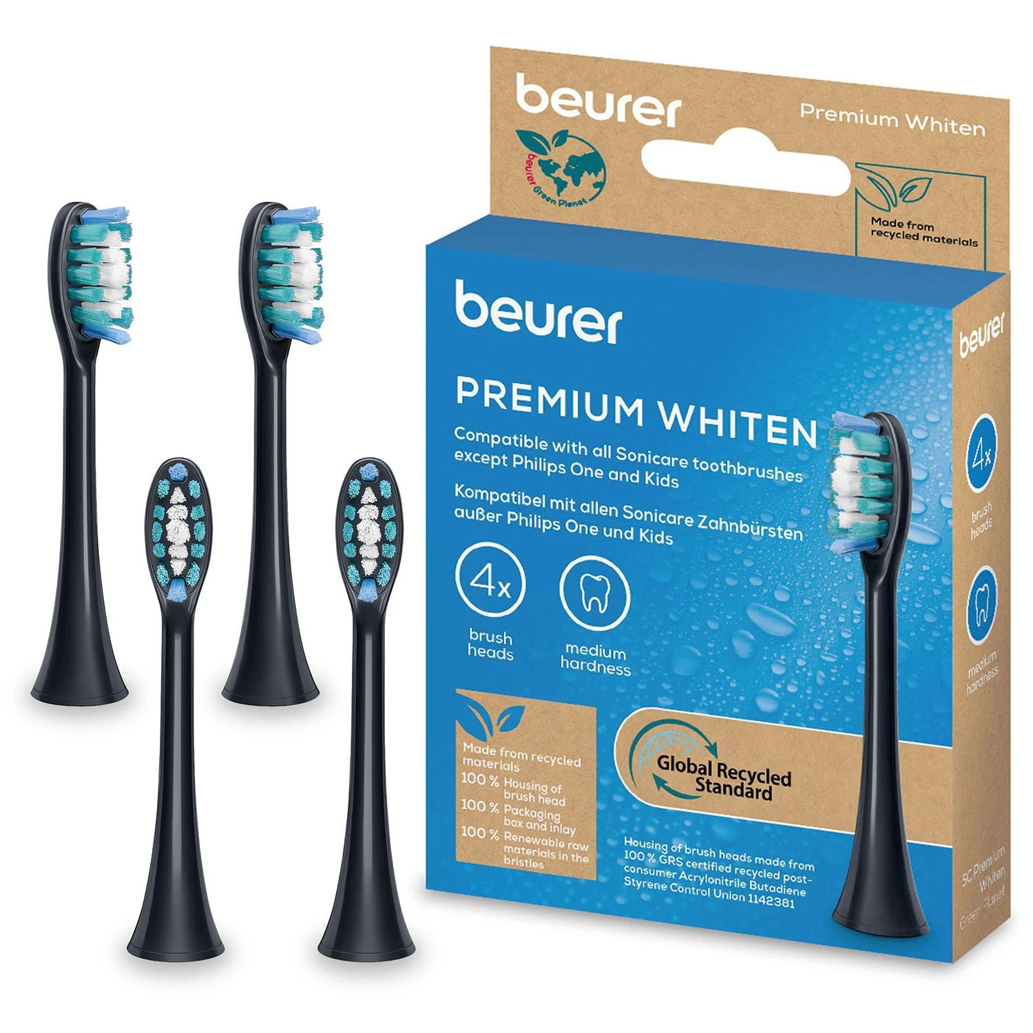 Насадки для зубних щіток Beurer SC 30/50 Premium Whiten, для відбілювання, 4 шт в комплекті, чорні
