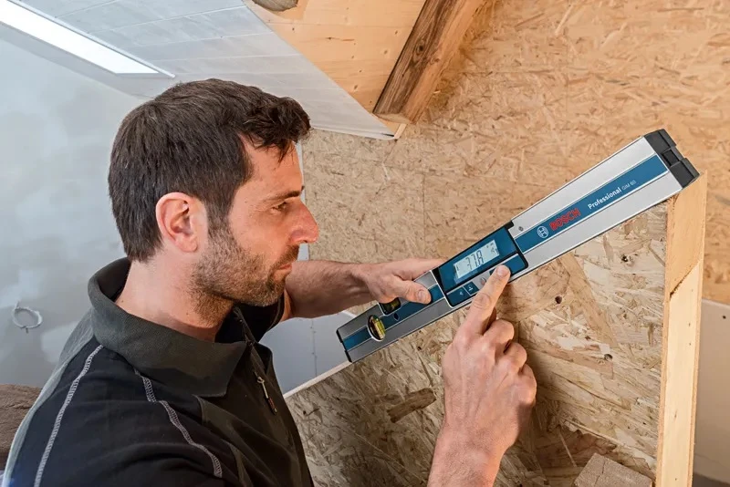 Цифровий нахиломір Bosch GIM60 точно вимірює і переносить кути нахилу для професійних будівельних робіт. Прилад показує значення у градусах, процентах або мм/м та має стрілки і звукові сигнали при 0° і 90° для зручного вирівнювання. Автоматичний переворот дисплея спрощує роботу над головою.