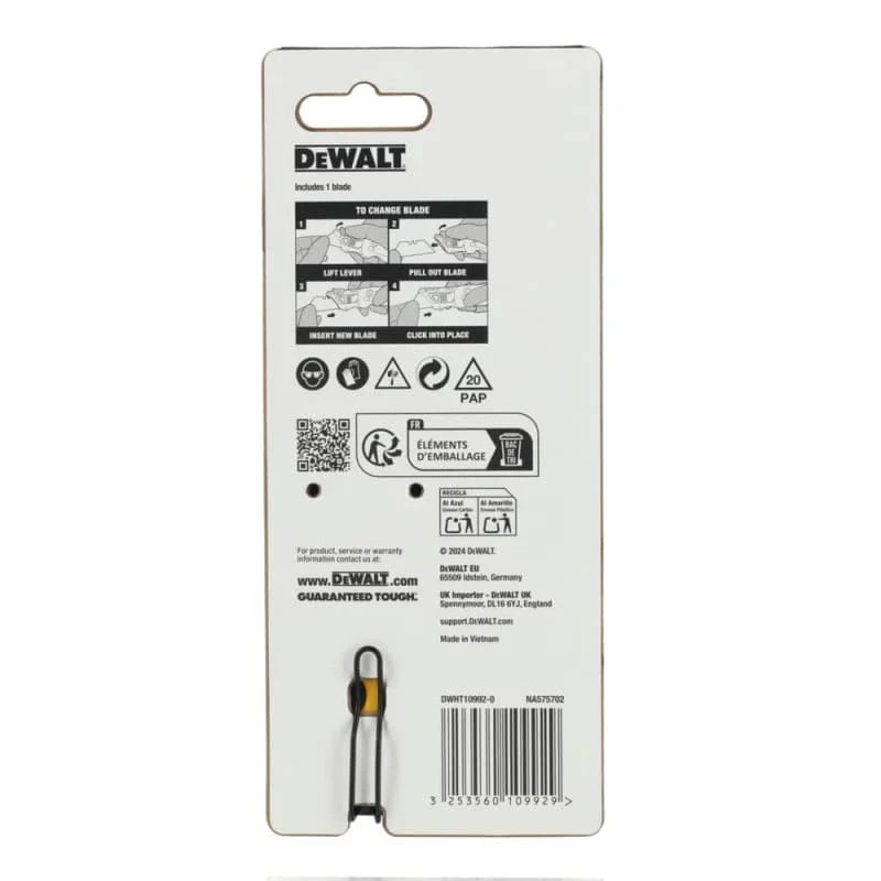 Ніж будівельний трапецієподібний складний DeWALT, з фіксованим лезом, корпус пластик, 82мм