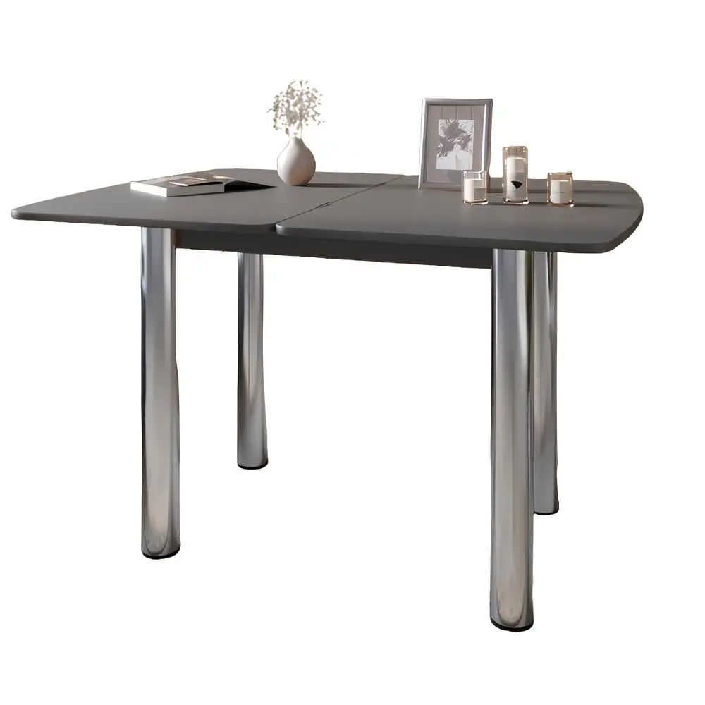Обеденный стол раскладной LION Нота Антрацит 60x90/90x120 (LION-041276) ТОПРаскладной обеденный стол LION Нота — это идеальное сочетание современного дизайна, функциональности и надёжности. В сложенном состоянии он компактен, а при раскладывании увеличивается с 60×90 см до 90×120 см, создавая удобное пространство для семейных обедов и встреч с друзьями. Элегантный цвет Антрацит придаёт интерьеру утончённость и стиль.Столешница выполнена из прочной ламинированной ДСП производства Swiss Krono, устойчива к царапинам и износу. Металлические ножки обеспечивают надёжную опору и придают мебели современный вид. LION Нота — это практичный, долговечный и эстетичный вариант для кухни, столовой или гостиной.Преимущества модели LION НотаУдобный раскладной механизм увеличивает столешницу с 60×90 см до 90×120 см.Современный цвет Антрацит идеально подходит для любого интерьера.Столешница из ламинированной ДСП от Swiss Krono устойчива к влаге и повреждениям.Прочные металлические ножки обеспечивают устойчивость и надёжность конструкции.Комфортная высота 75 см подходит для стандартных стульев и сидений.Компактные размеры позволяют экономить место в небольшой кухне.Гарантийный срок — 12 месяцев.Характеристики товараВысота, см — 75Глубина, см — 60Цвет — АнтрацитШирина, см — 120Материал корпуса — Ламинированная ДСПМатериал столешницы — Ламинированная ДСПМатериал ножек — МеталлГарантийный срок — 12 месяцевПроизводитель ЛДСП — Swiss Krono