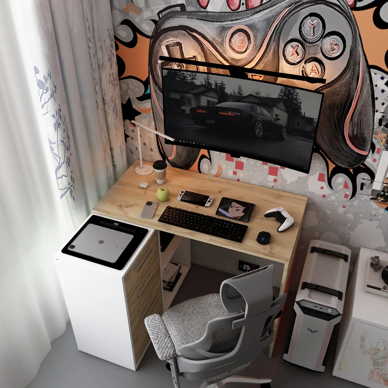 Офісний стіл Doros T8 Білий/Дуб Артизан 100х83х75