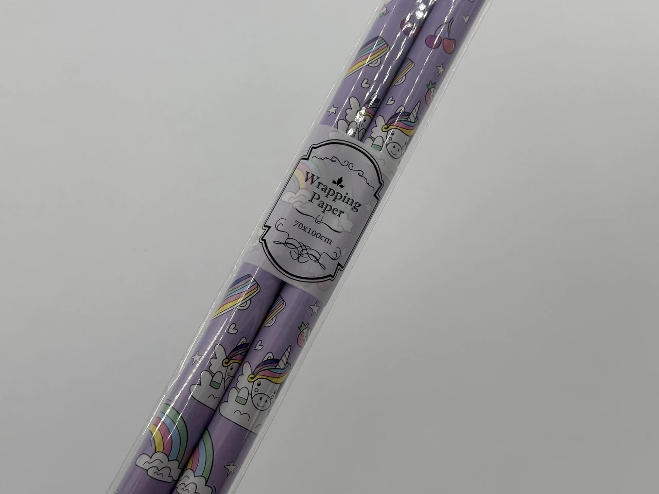 Бумага подарочная, Цвет фиолетовый, с принтом единорог 70х100см. 2шт