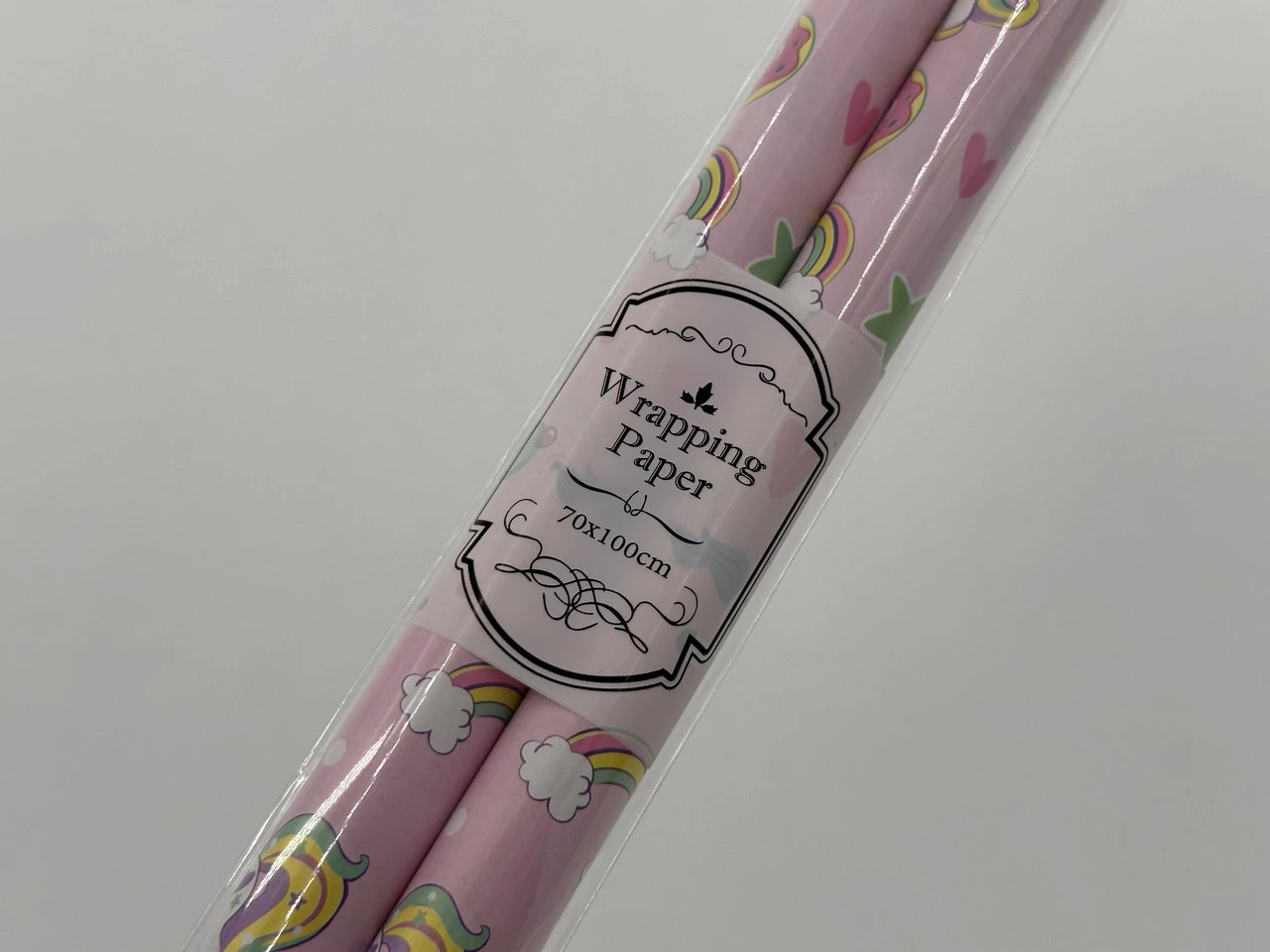 Бумага подарочная, 70х100см, Цвет «розовый», с принтом единорога, 2шт