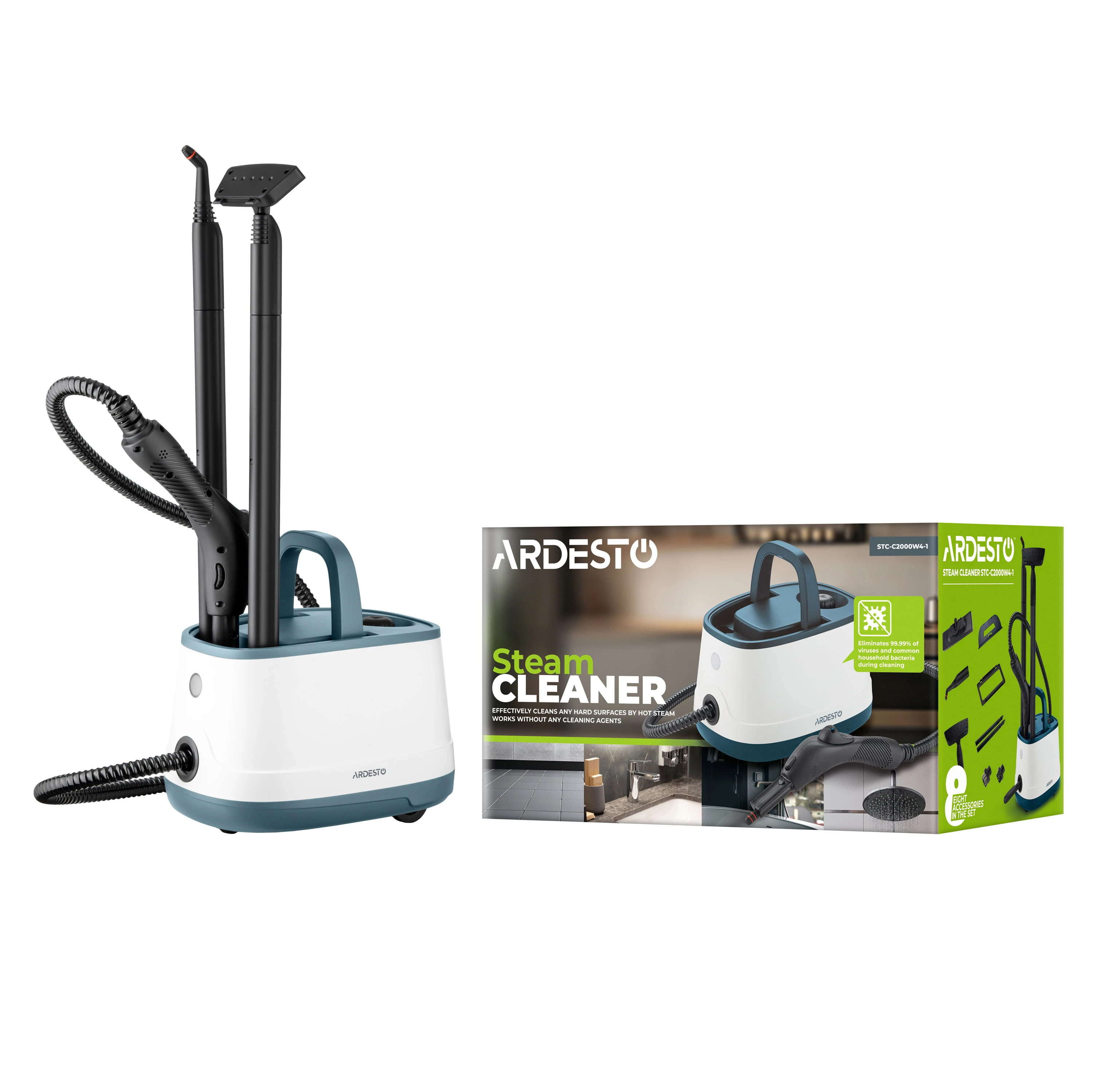 Пароочисник ARDESTO, 2000Вт, 1500мл, 4Бар, білий+ синій