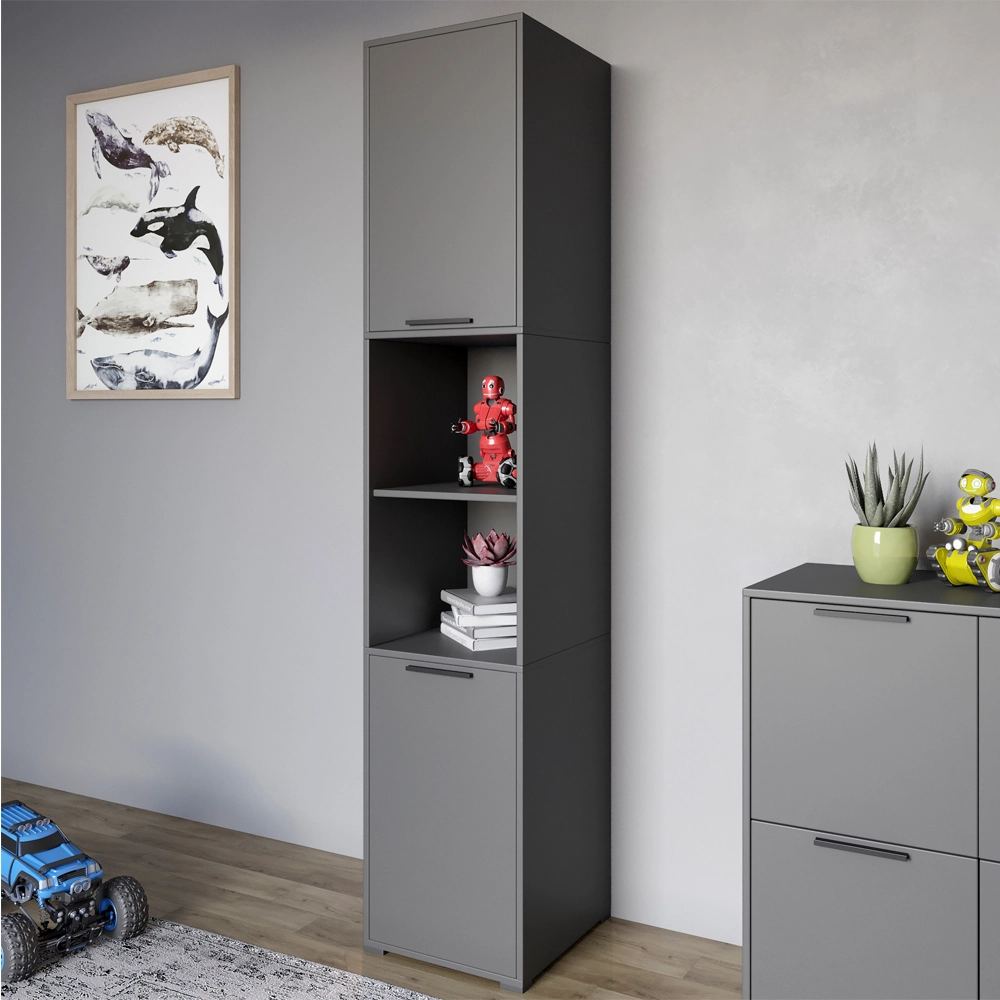 LION Краш — стильный и функциональный закрытый пенал в современном цвете Антрацит, который станет идеальным дополнением для спальни, гостиной или офисного пространства. Благодаря вертикальной конструкции он позволяет максимально эффективно использовать площадь, занимая минимум места.