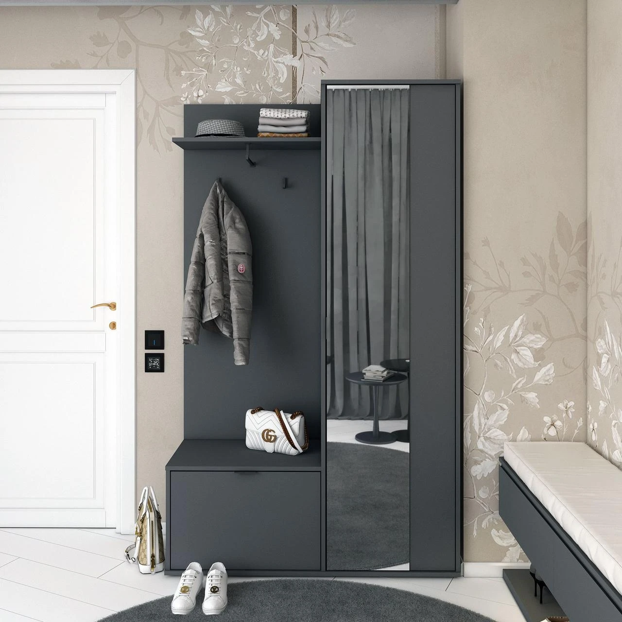 Зустрічайте незамінний елемент вашого інтер'єру – передпокій з дзеркалом Doros Дора! Цей елегантний меблевий комплект, виконаний у сучасному графітовому кольорі, ідеально підійде для будь-якого дизайну. Його розміри 113,5х40х192 см забезпечують достатньо простору для зберігання ваших речей, а дзеркало додає візуальної глибини та світла вашому передпокою. Виготовлений з якісних матеріалів, цей передпокій стане не лише стильним акцентом, а й надійним помічником у повсякденному житті.
