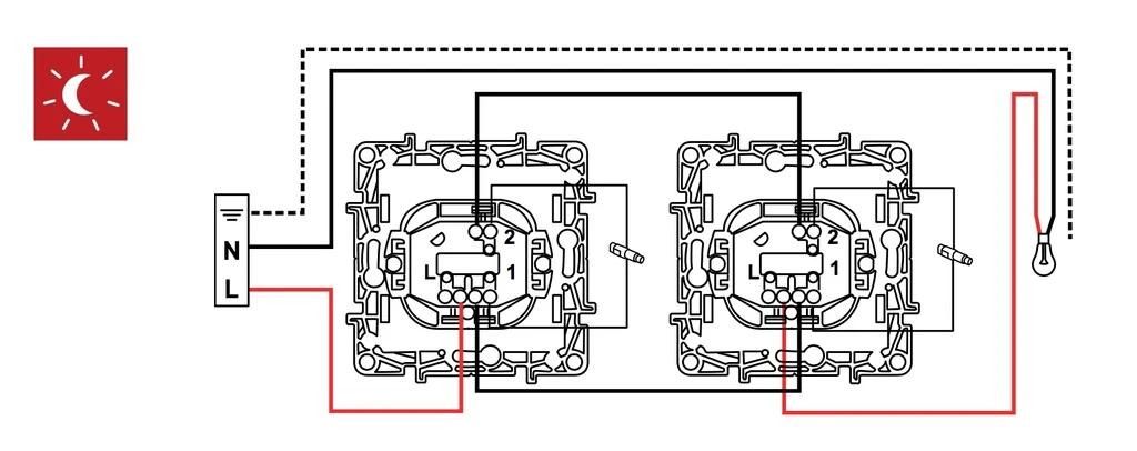 Перемикач одноклавішний з підсвічуванням. Поставляється з лампою. Залежно від способу підключення лампа може працювати як підсвічування або індикація. Кріплення в монтажну коробку на захопленнях і гвинтах. Механізм нового покоління Etika: підключення кабелю за допомогою безгвинтових затискачів (крім проміжного перемикача і 3-клавішного вимикача). Механізми поставляються в індивідуальній упаковці. Вимикачі і перемикачі 10 AX - 250 В ~