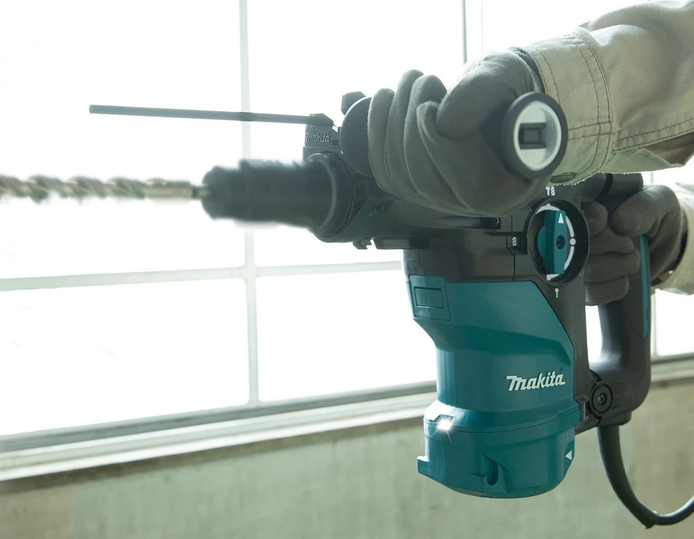 Перфоратор Makita HR3012FCJ - це високопродуктивний інструмент для свердління без удару і з ударом, а також довбання. Він стане в нагоді при важких професійних роботах в ремонтно-будівельній сфері. Представлена модель обладнана двигуном з потужністю 1050 Вт, який розташовується вертикально. Завдяки такому розташуванню, мотор стійко витримує тривалий час роботи без перегріву. Він працює від електромережі з напругою 220 Вт. Перфоратор здолає будь-який вид матеріалу, будь то бетон, цегла, метал, камінь або дерево.
