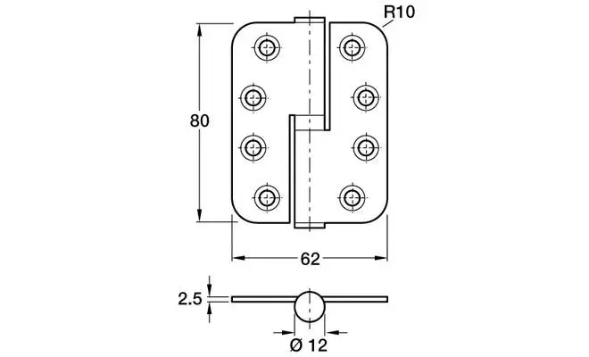Петля Hafele карточная левая латунь 80х62мм D 12 х 7 мм толщина: 2.5 мм 92620580