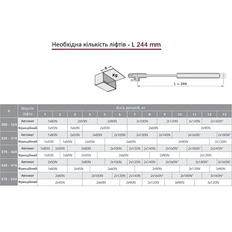 Подъемный механизм Italiana Ferramenta KRABY L=244 N50 Алюминий