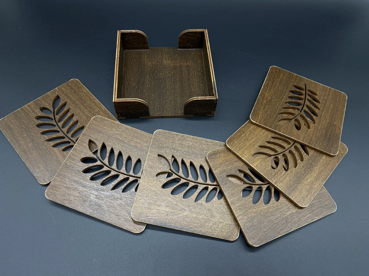 Костер под горячую посуду из дерева в коробке, 10х11см, 6шт, тонированные