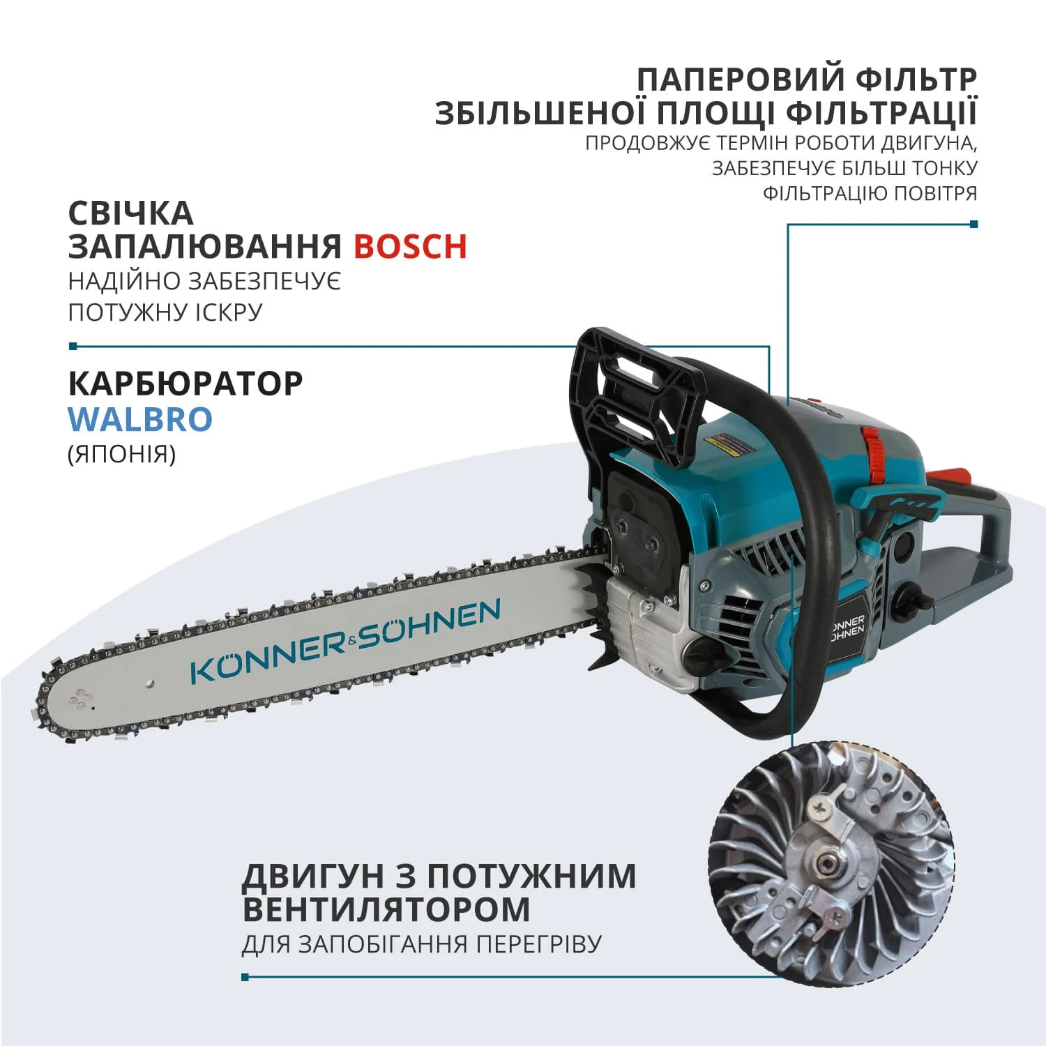 Пила бензинова Konner&Sohnen KS CS31G-18 45см 54.5см3 5.6кг