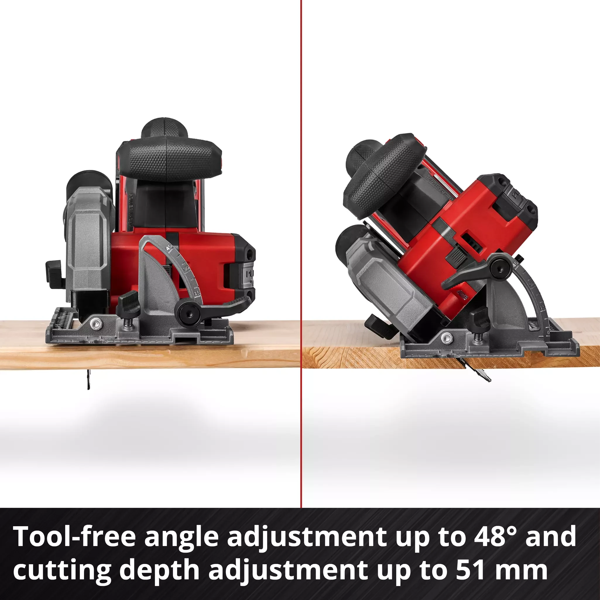 Einhell Professional TP-CS 18/136-C Li BL Solo — акумуляторна дискова пила з безщітковим двигуном на 18 В і частотою обертання 4000 об/хв. Диск 136×20 мм із 16 зубами HW/TCT забезпечує глибину різу до 51 мм під кутом 90° і до 48° нахилу для скосів. Маса лише 2,26 кг і компактна конструкція роблять інструмент зручним для тривалої роботи. Світлодіодне підсвічування, індикатор лінії різу та алюмінієва підошва забезпечують точність різу. АКБ та зарядний пристрій до комплекту не входять.