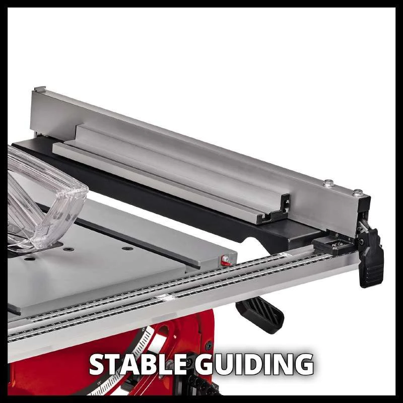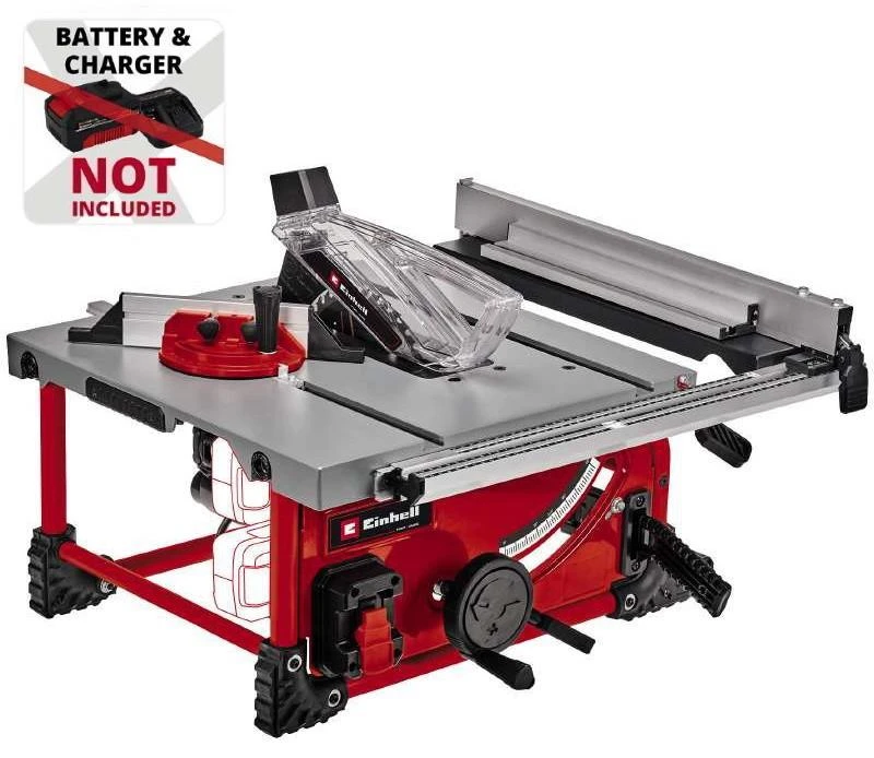 Einhell TE-TS 36/210 LI Solo — акумуляторна настільна дискова пила системи Power X-Change на 36 В (2×18 В) із диском 210×30 мм. Міцний алюмінієвий стіл із висувним розширенням праворуч дає змогу розпилювати широкі заготовки, а нахил диска до 45° забезпечує точні поперечні різи. Кутовий упор із діапазоном від −60° до +60° і паралельний упор розширюють можливості точного розпилювання. Маса — 13,2 кг. АКБ та зарядний пристрій до комплекту не входять.